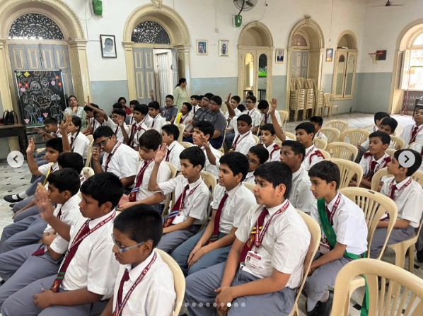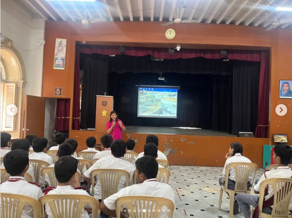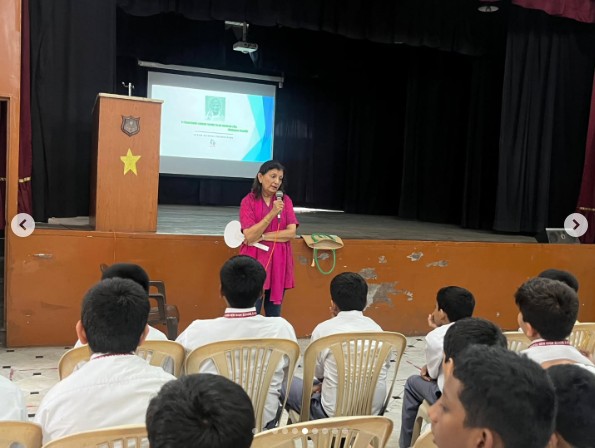 Through her inspiring talk, Mrs. Oza enlightened the students about the importance of recycling and how simple actions—like collecting used milk bags and plastic—can significantly contribute to environmental conservation. She also highlighted the role of young citizens in maintaining a clean and green environment.
