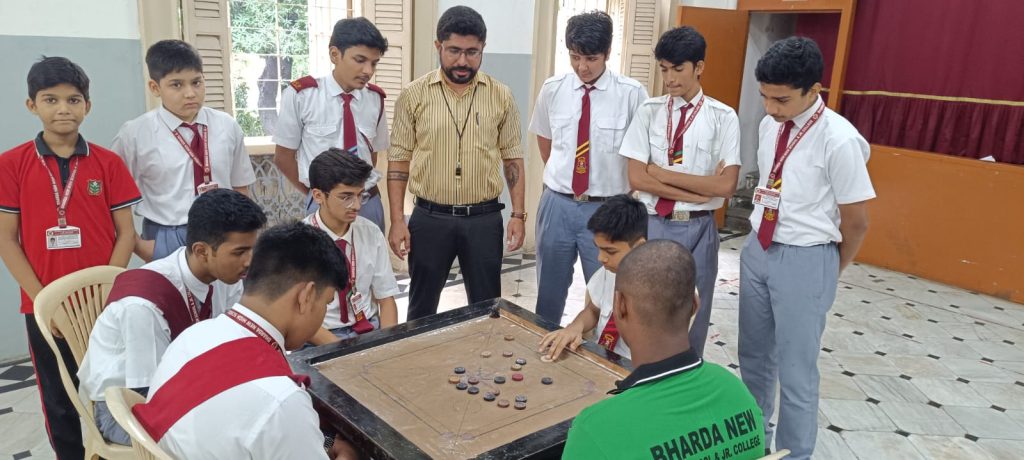 Bharda New High School & Junior College proudly organized an exciting Inter-House Carrom Competition, where students from the Secondary Section actively participated and showcased their impressive skills.